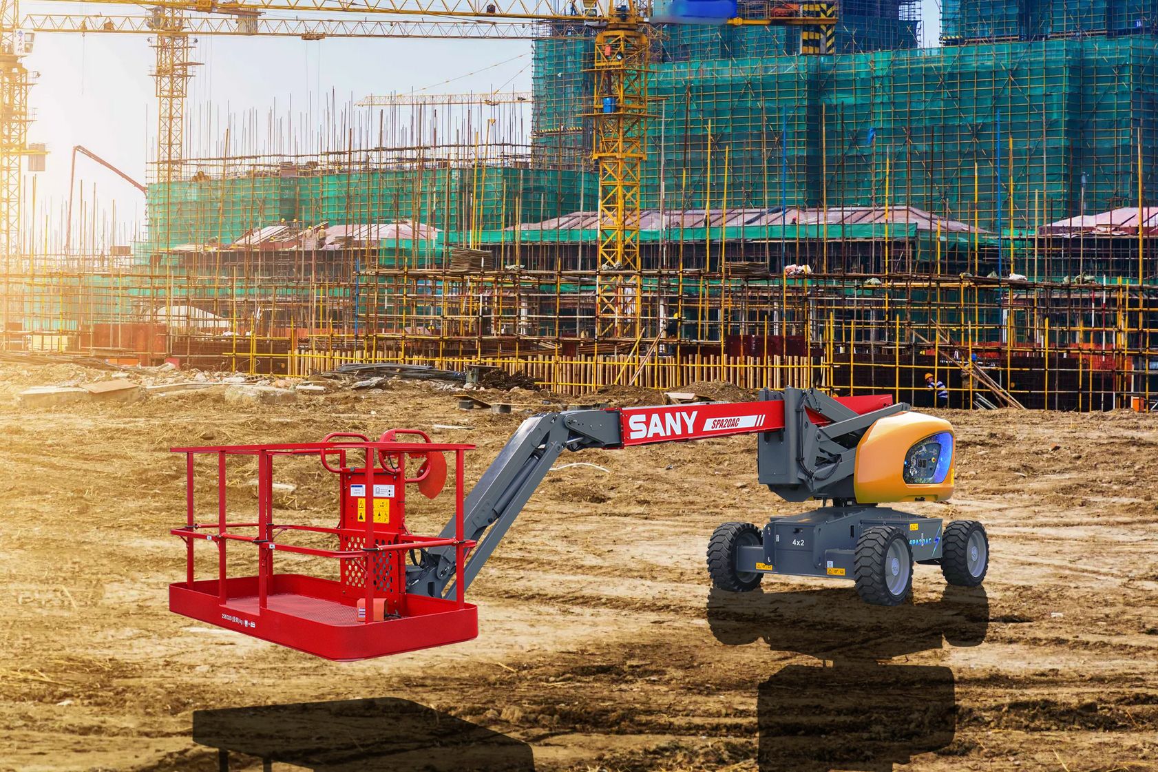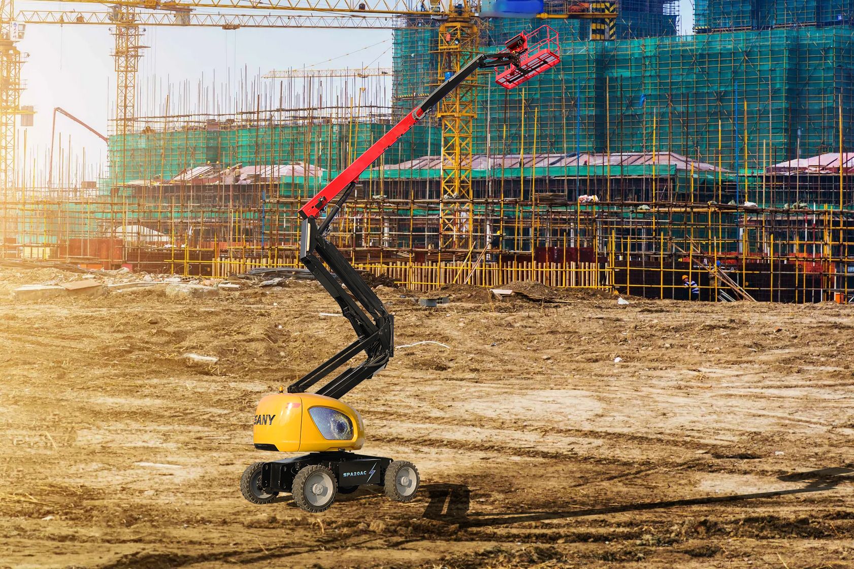 Максимальная рабочая высота — 22 метра, что делает подъёмник идеальным для выполнения сложных высотных задач на крупных строительных объектах, промышленных предприятиях и в логистических центрах. Горизонтальный вылет стрелы достигает 12,4 метра, обеспечивая доступ к труднодоступным зонам даже при наличии препятствий. Грузоподъёмность платформы — до 258 кг, позволяет размещать двух операторов с полным комплектом инструментов и оборудования. Максимальная вместимость — 2 человека + материалы. Масса техники — 10 тонн. Привод — электрический, что обеспечивает экологичность, низкий уровень шума и возможность работы в закрытых помещениях без вреда для персонала.