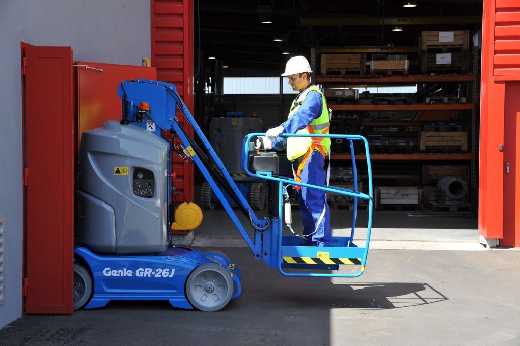 Подъёмник Genie® Runabout® GR™-26J — это высокопроизводительная машина с гуськовой стрелой, разработанная для решения сложных задач на высоте. Он способен поднимать грузы массой до 200 кг, что делает его надёжным помощником при выполнении строительных, монтажных и складских работ.